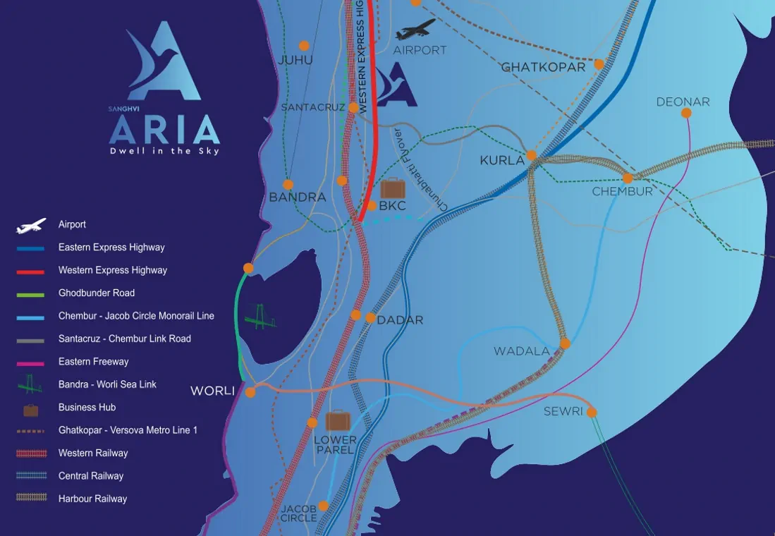 At Santacruz EastSanghvi Aria features a range of meticulously designed 1 & 2 BHK luxury apartments, each boasting a perfect fusion of modern aesthetics and functionality. The project's prime location places it in close proximity to key landmarks, making it an ideal choice for those who appreciate strategic accessibility.